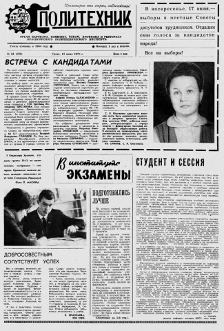 Политехник : газета. 1973 г. № 24 (332) (13 июня)