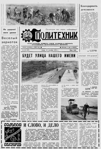 Политехник : газета. 1973 г. № 29 (337) (19 сентября)