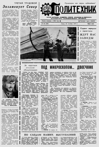 Политехник : газета. 1973 г. № 30 (338) (26 сентября)