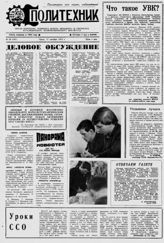 Политехник : газета. 1973 г. № 33 (341) (17 октября)