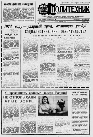 Политехник : газета. 1974 г. № 10 (356) (6 марта)