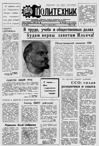 Политехник : газета. 1974 г. № 16 (362) (17 апреля)