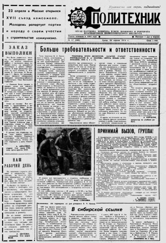 Политехник : газета. 1974 г. № 17 (363) (24 апреля)