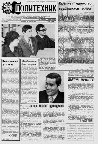 Политехник : газета. 1974 г. № 18 (364) (30 апреля)