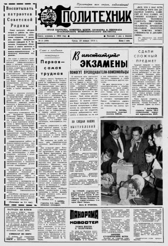 Политехник : газета. 1974 г. № 3 (349) (23 января)