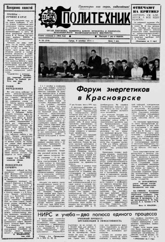 Политехник : газета. 1974 г. № 30 (376) (9 октября)