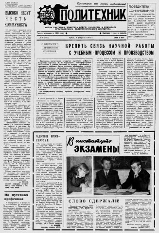 Политехник : газета. 1974 г. № 6 (352) (6 февраля)