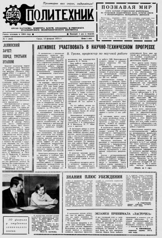 Политехник : газета. 1974 г. № 7 (353) (13 февраля)