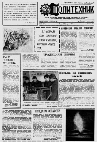 Политехник : газета. 1974 г. № 8 (354) (20 февраля)