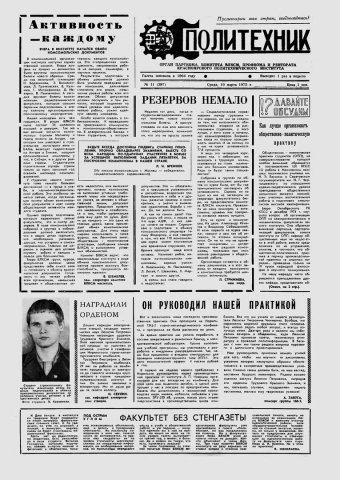 Политехник : газета. 1975 г. № 11 (397) (19 марта)