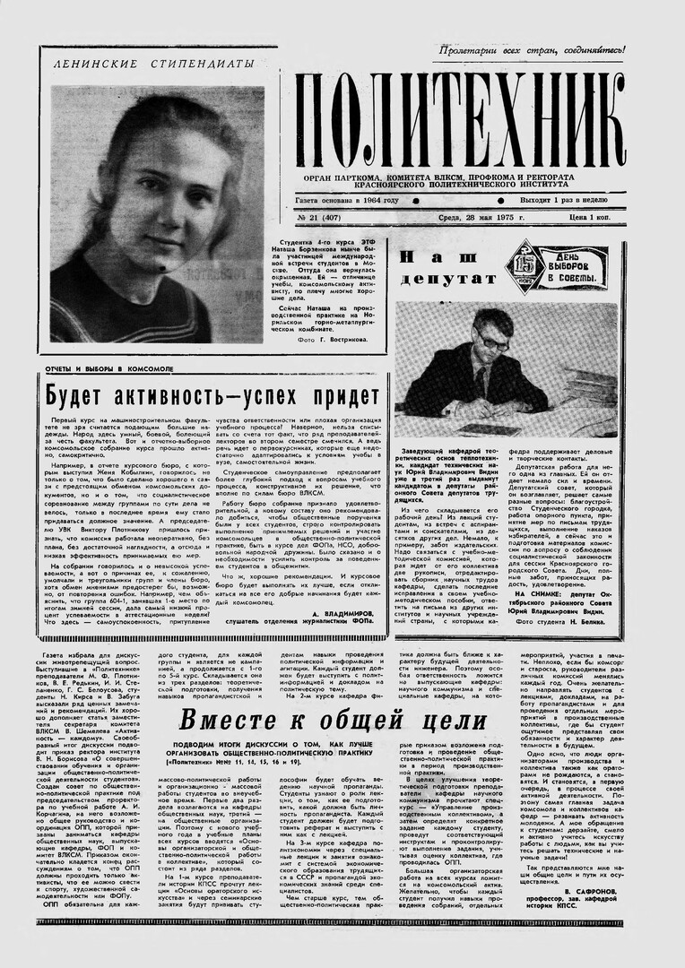 Политехник : газета. 1975 г. № 21 (407) (28 мая)