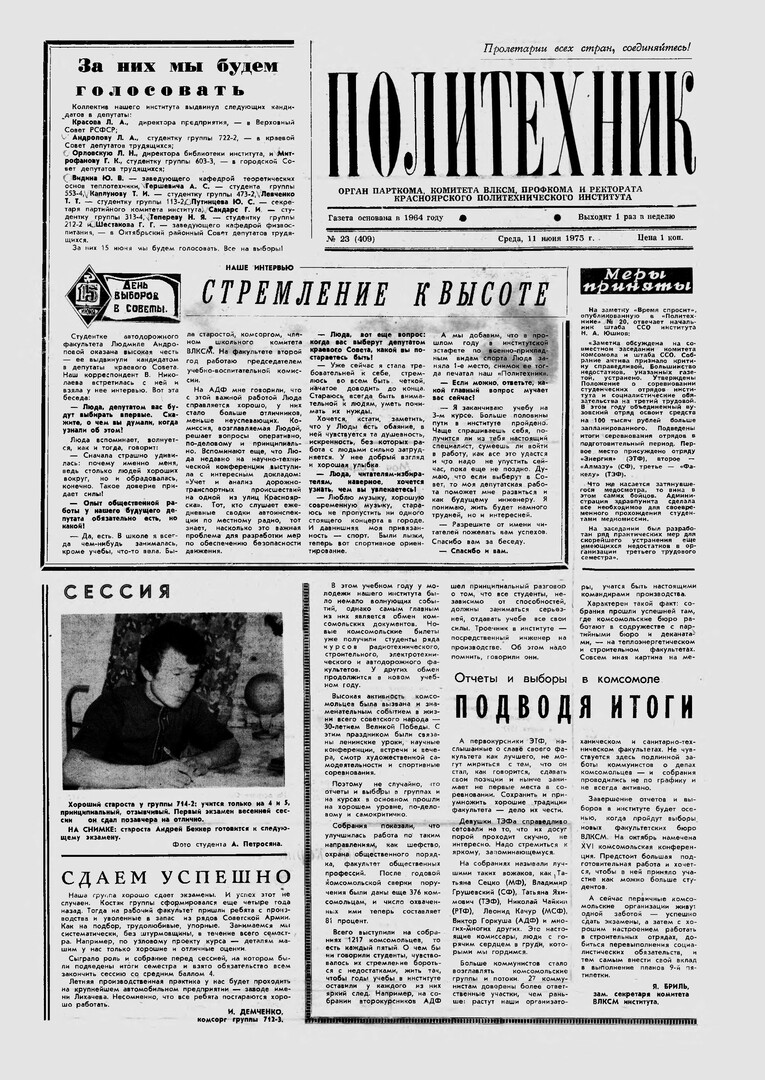 Политехник : газета. 1975 г. № 23 (409) (11 июня)