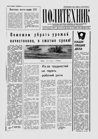 Политехник : газета. 1976 г. № 27 (454) (15 сентября)