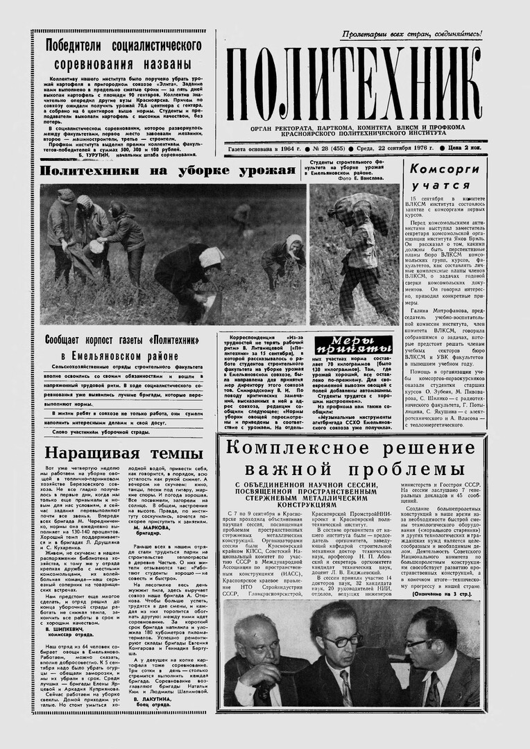 Политехник : газета. 1976 г. № 28 (455) (22 сентября)