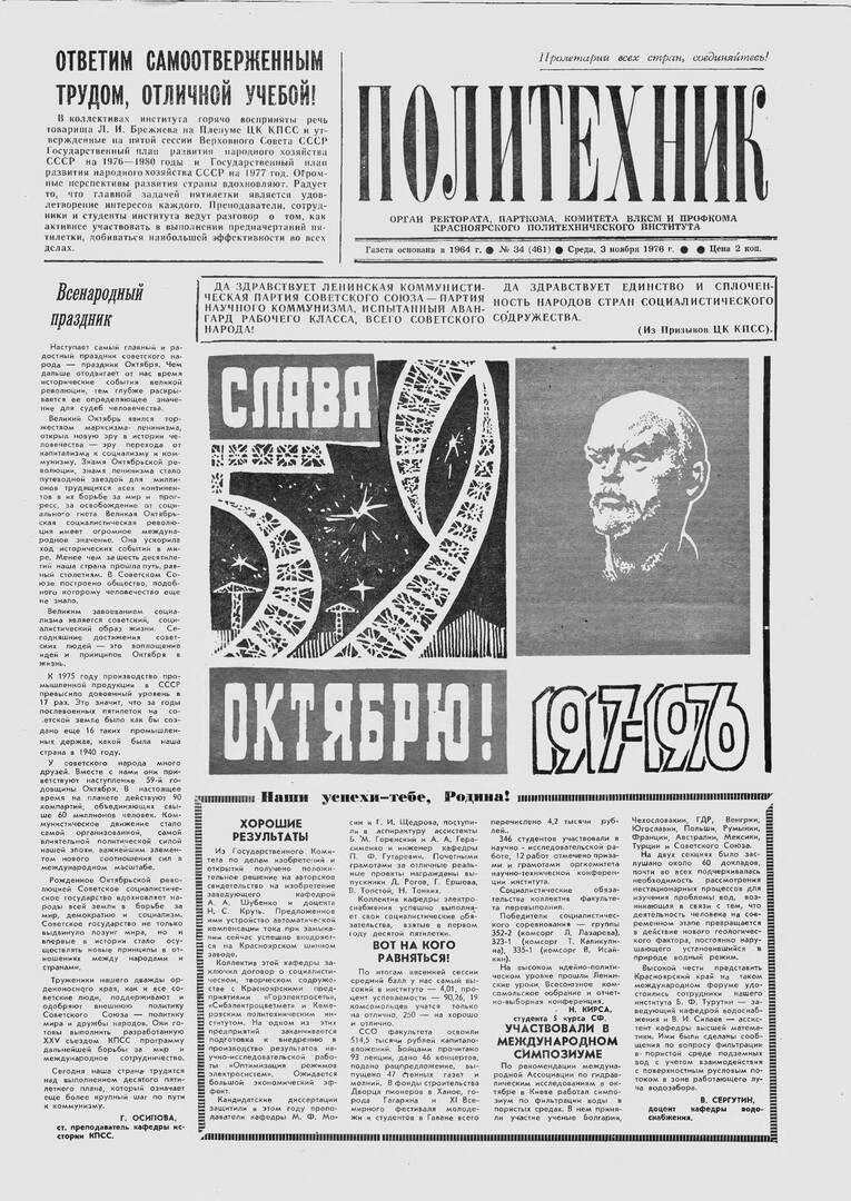 Политехник : газета/ Краснояр. политех. ин-т. - Красноярск : КГТУ, 1964 - - 2006 1976г. N 34 (461) (3 ноября) http://lib3.sfu-kras.ru/ft/LIB2/ELIB_DC/SFUPRSV/sfupol/1976/1976_11_03_0461.pdf