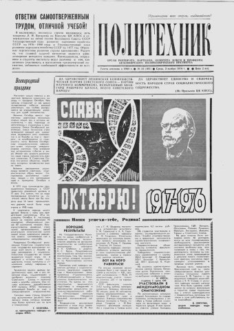Политехник : газета. 1976 г. № 34 (461) (3 ноября)