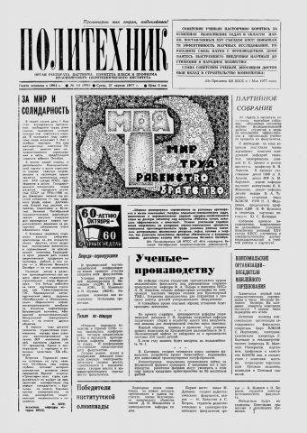 Политехник : газета. 1977 г. № 14 (481) (27 апреля)
