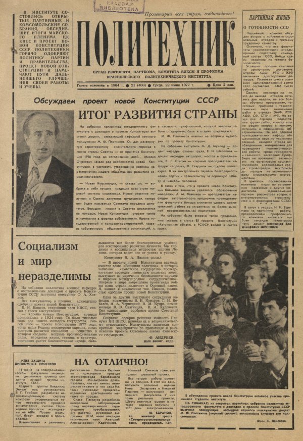 Политехник : газета. 1977 г. № 21 (488) (22 июня)