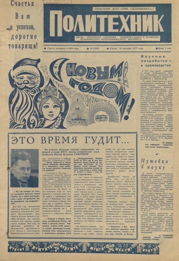 Политехник : газета. 1977 г. № 38 (504) (28 декабря)