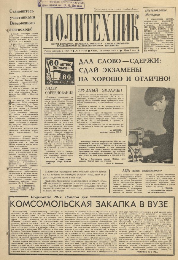 Политехник : газета. 1977 г. № 4 (471) (26 января)