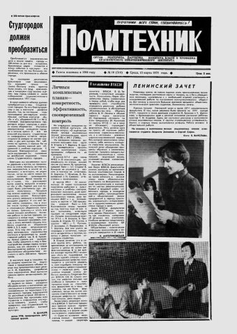 Политехник : газета. 1978 г. № 10 (514) (15 марта)