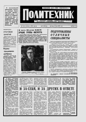 Политехник : газета. 1978 г. № 18 (522) (24 мая)