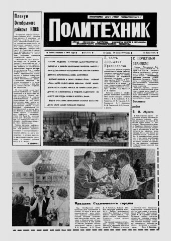 Политехник : газета/ Краснояр. политех. ин-т. - Красноярск : КГТУ, 1964 - - 2006 1978г. N 23 (527) (28 июня) http://lib3.sfu-kras.ru/ft/LIB2/ELIB_DC/SFUPRSV/sfupol/1978/1978_06_28_0527.pdf