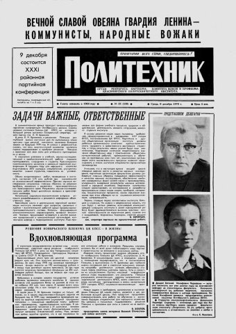 Политехник : газета. 1978 г. № 35 (538) (6 декабря)