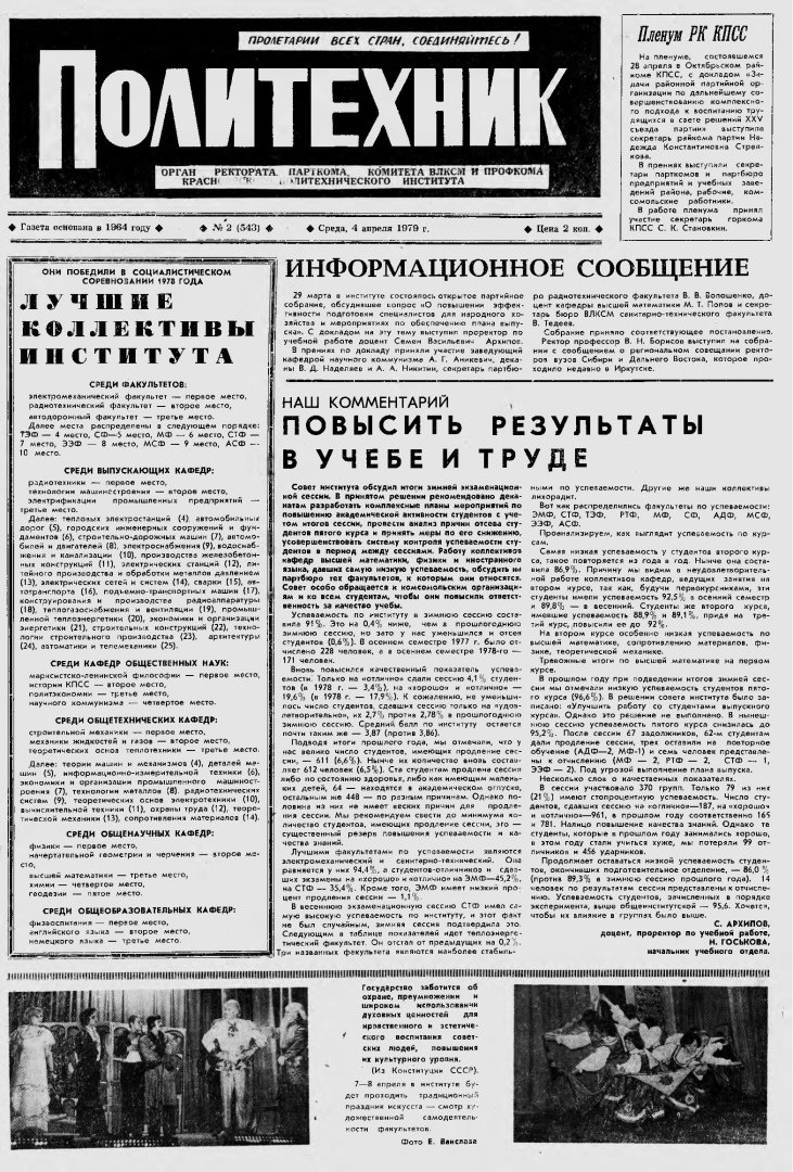 Политехник : газета. 1979 г. № 2 (543) (4 апреля)