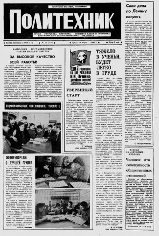 Политехник : газета. 1980 г. № 12 (577) (26 марта)