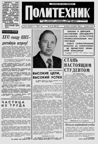 Политехник : газета. 1980 г. № 27 (592) (15 октября)