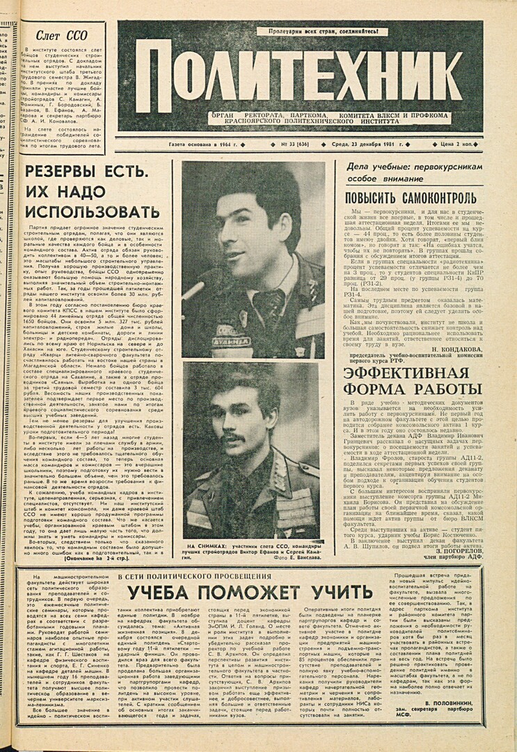 Политехник : газета. 1981 г. № 33 (636) (23 декабря)