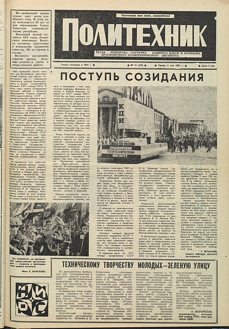 Политехник : газета. 1982 г. № 12 (649) (5 мая)