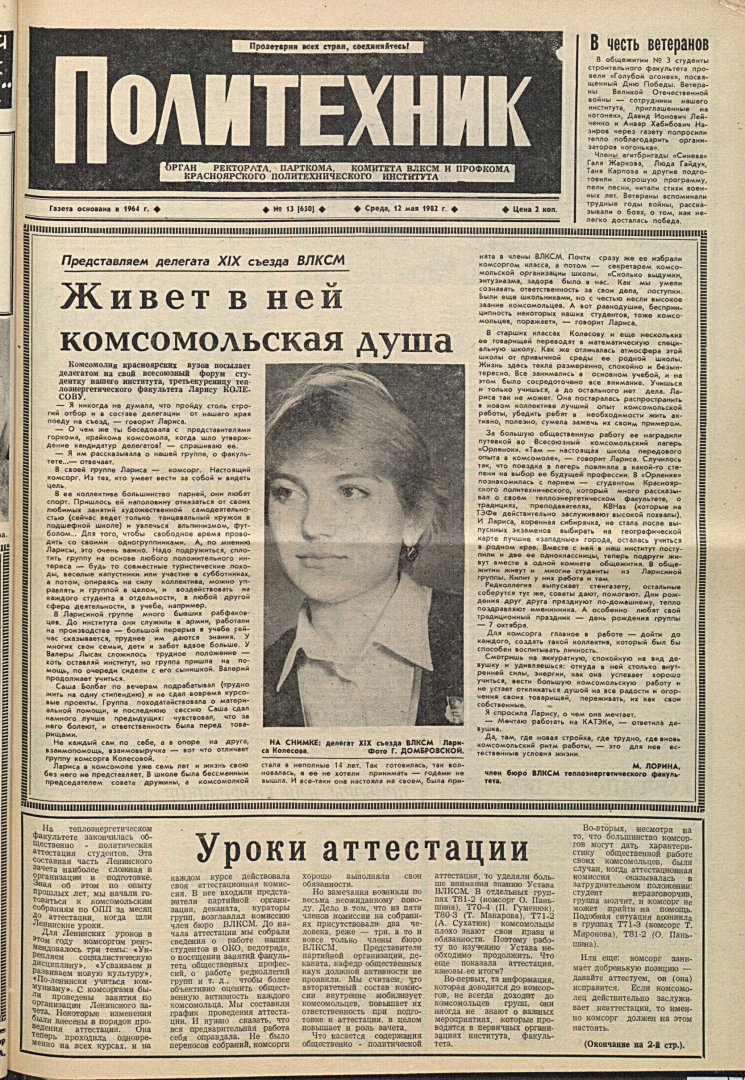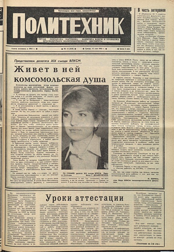 Политехник : газета. 1982 г. № 13 (650) (12 мая)