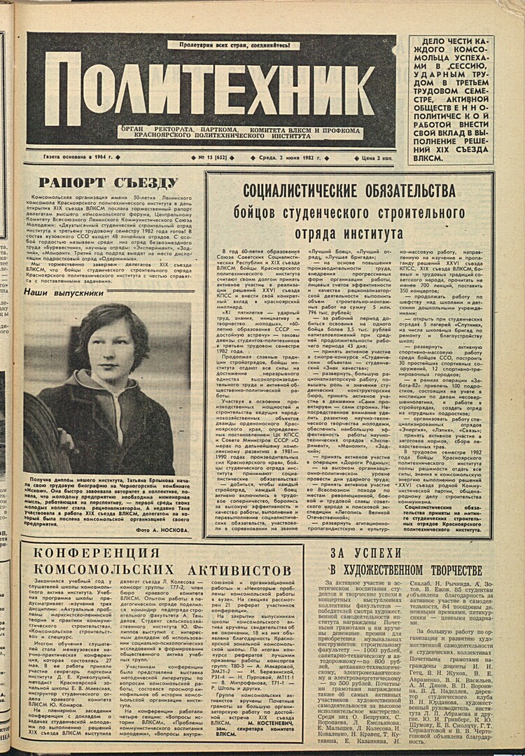 Политехник : газета. 1982 г. № 15 (652) (2 июня)
