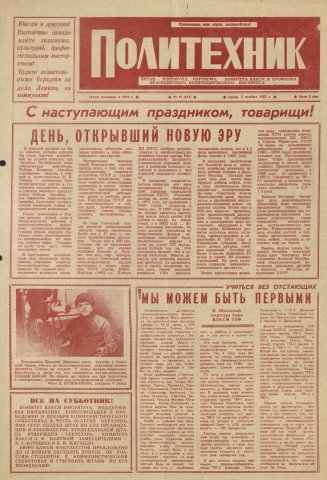 Политехник : газета. 1982 г. № 18 (655) (3 ноября)