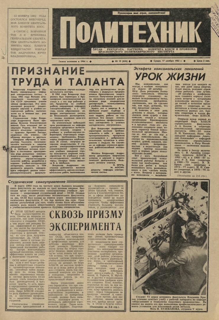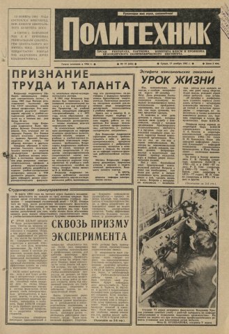 Политехник : газета. 1982 г. № 19 (656) (17 ноября)