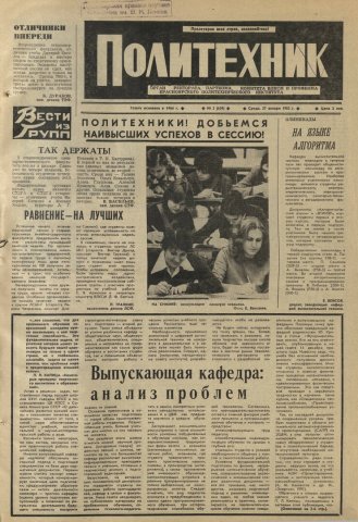 Политехник : газета. 1982 г. № 2 (639) (27 января)