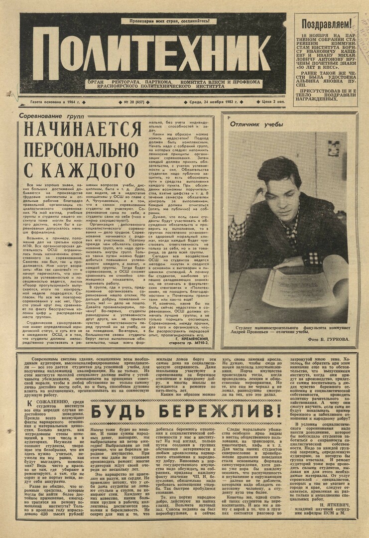 Политехник : газета. 1982 г. № 20 (657) (24 ноября)