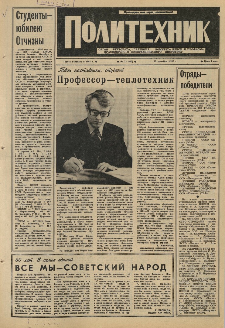 Политехник : газета. 1982 г. № 23 (660) (22 декабря)