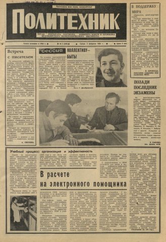 Политехник : газета. 1982 г. № 3 (640) (3 февраля)