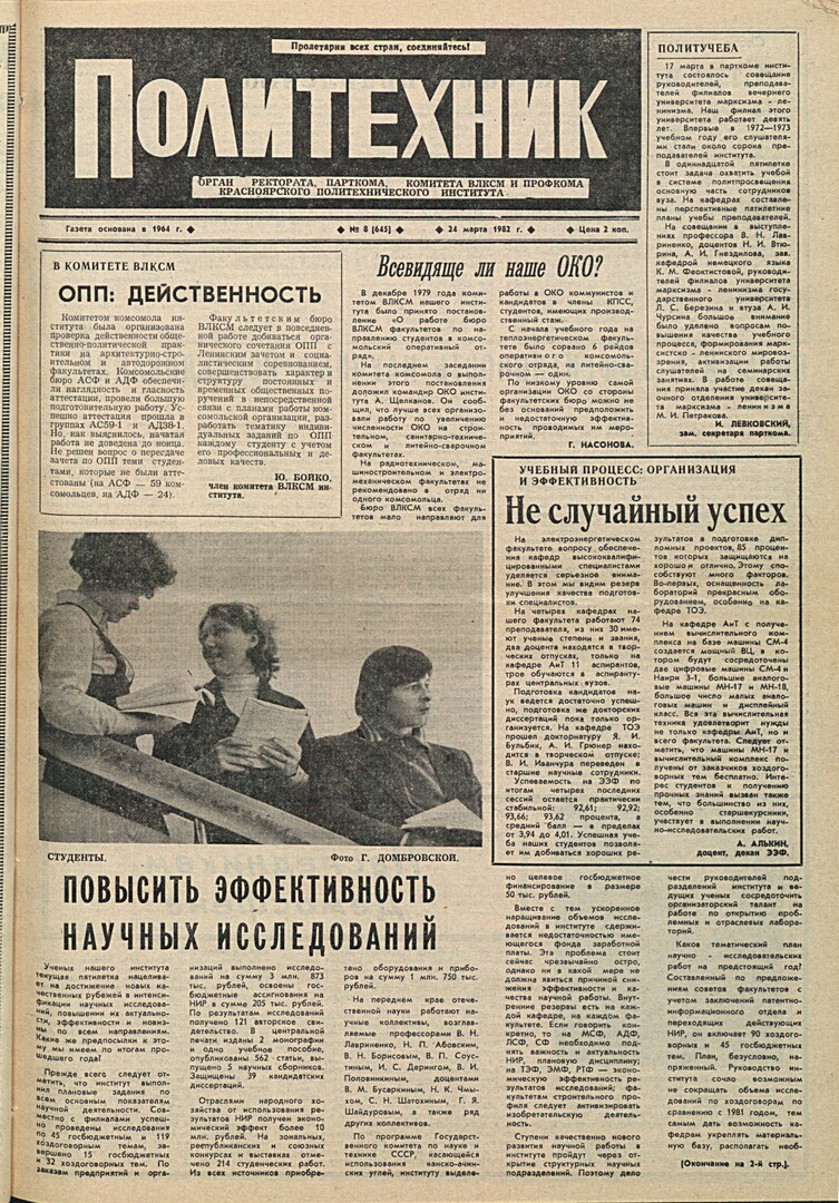 Политехник : газета. 1982 г. № 8 (645) (24 марта)