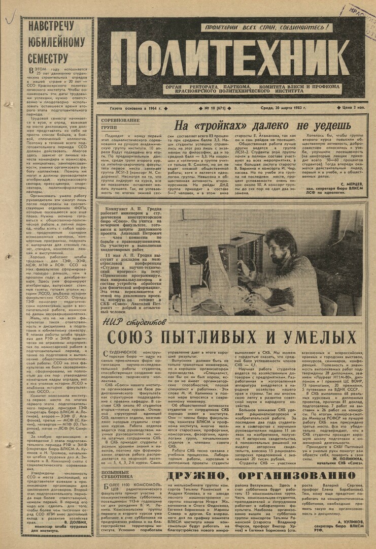 Политехник : газета. 1983 г. № 10 (671) (30 марта)