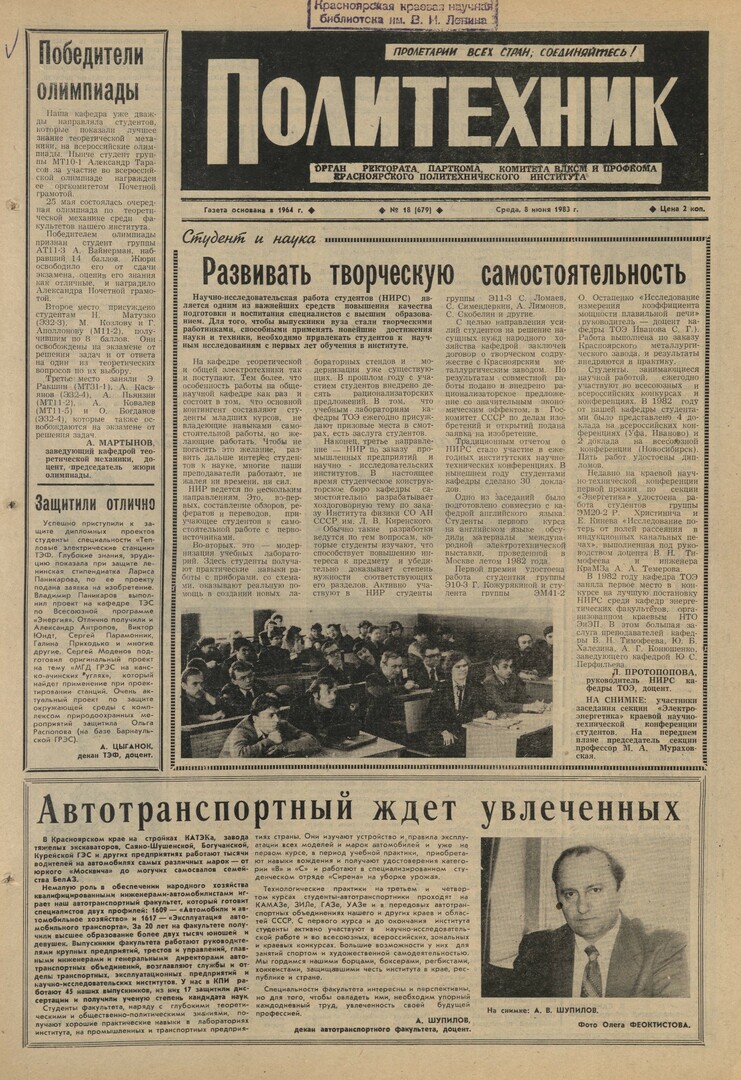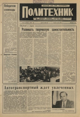 Политехник : газета. 1983 г. № 18 (679) (8 июня)