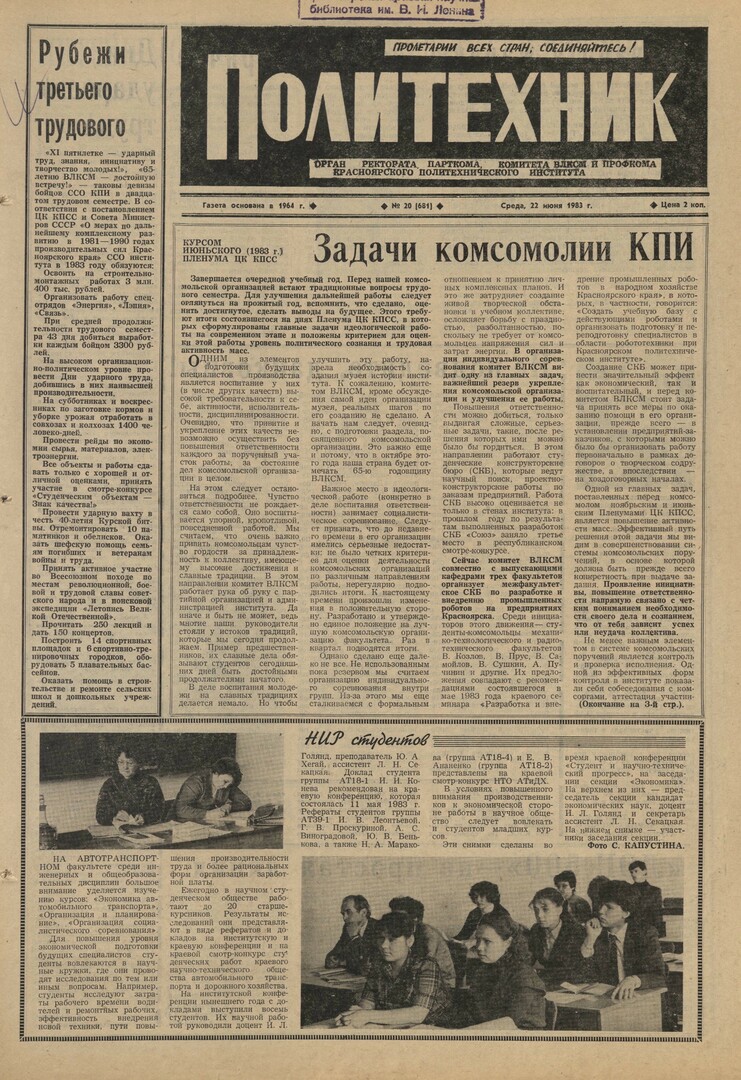 Политехник : газета. 1983 г. № 20 (681) (22 июня)