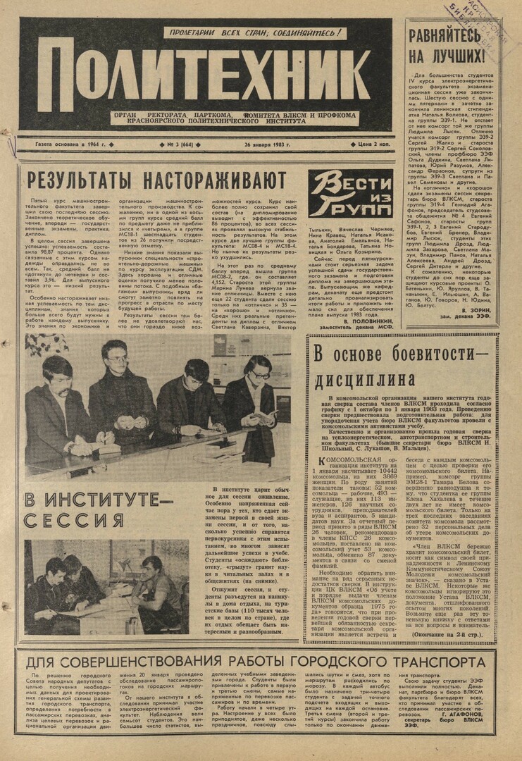Политехник : газета. 1983 г. № 3 (664) (26 января)