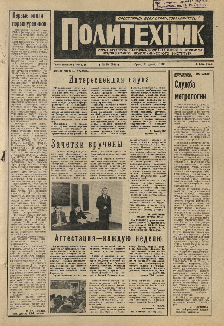 Политехник : газета. 1983 г. № 30 (691) (21 декабря)
