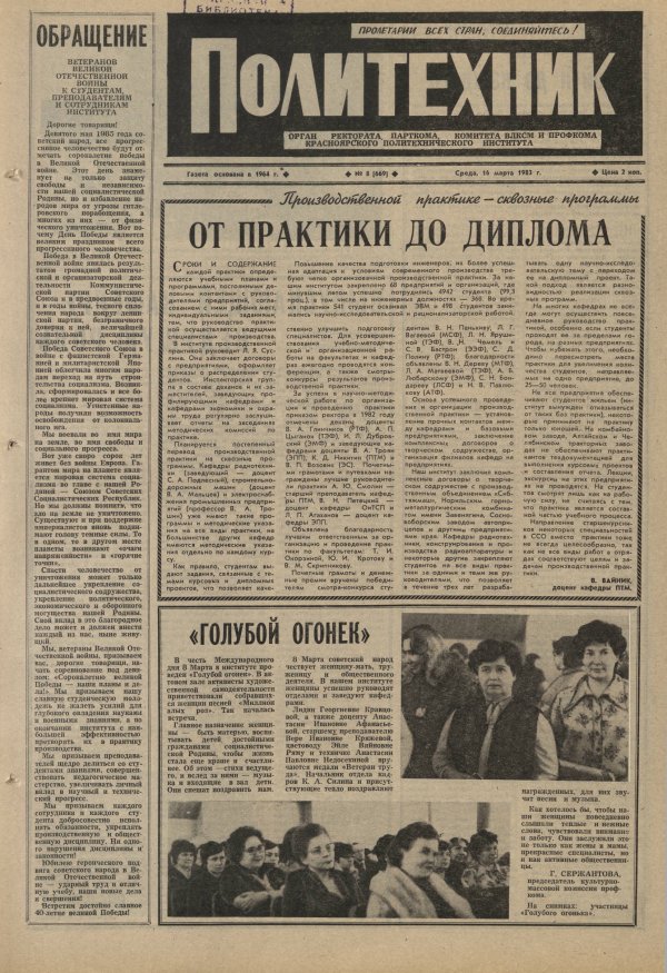 Политехник : газета. 1983 г. № 8 (669) (16 марта)
