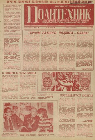 Политехник : газета. 1985 г. № 17 (743) (8 мая)