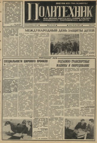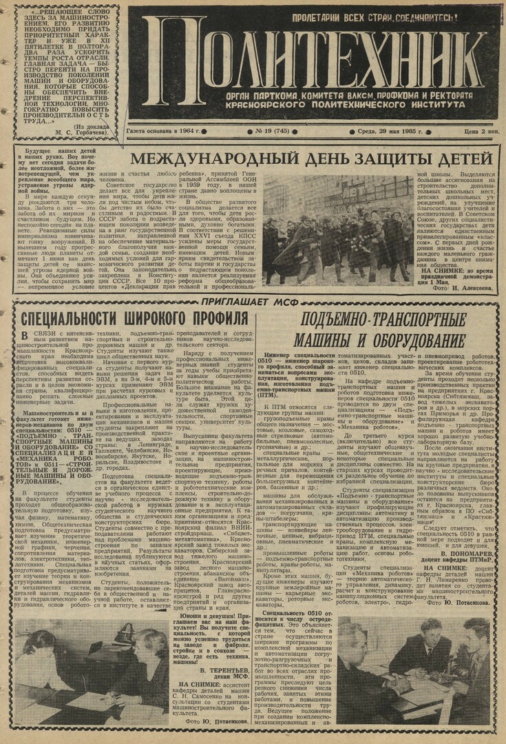 Политехник : газета. 1985 г. № 19 (745) (29 мая)